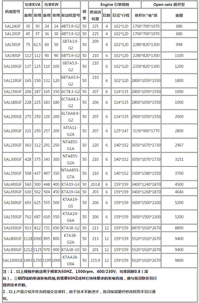 特别申明:改样品所列技术数据仅供参考。我公司保留在不通知客户情况下修改技术参数的权利本厂所售出机组全部为全新机,假一罚十。法律保证。