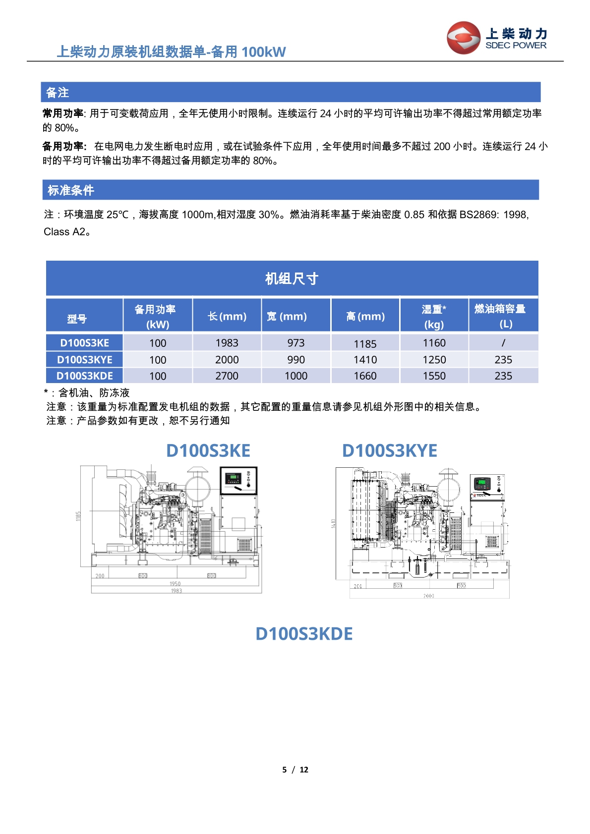 D100S3KE上柴国二系列发电机组